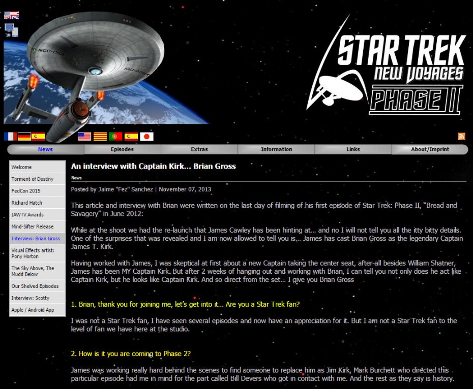 4. Website renamed from "Star Trek Phase II - UK + Germany" to "Star Trek New Voyages: Phase II - International.