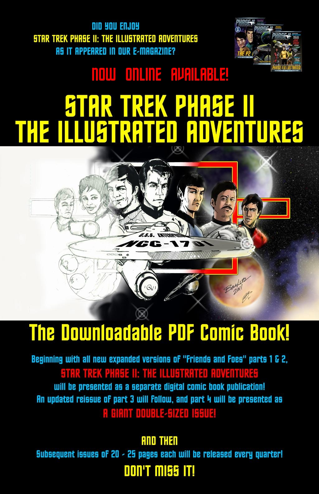 Star Trek: New Voyages/Phase II eMagazines are designed to give access to information not found on the website or discussion forum. The German edition contains reports, originally released on the US website, that have been translated into German as well as reports written by the team in Germany. Each issue contains, interviews, exclusive photos, articles, posters, and downloads that give you an idea of what it takes to produce ST:P2.